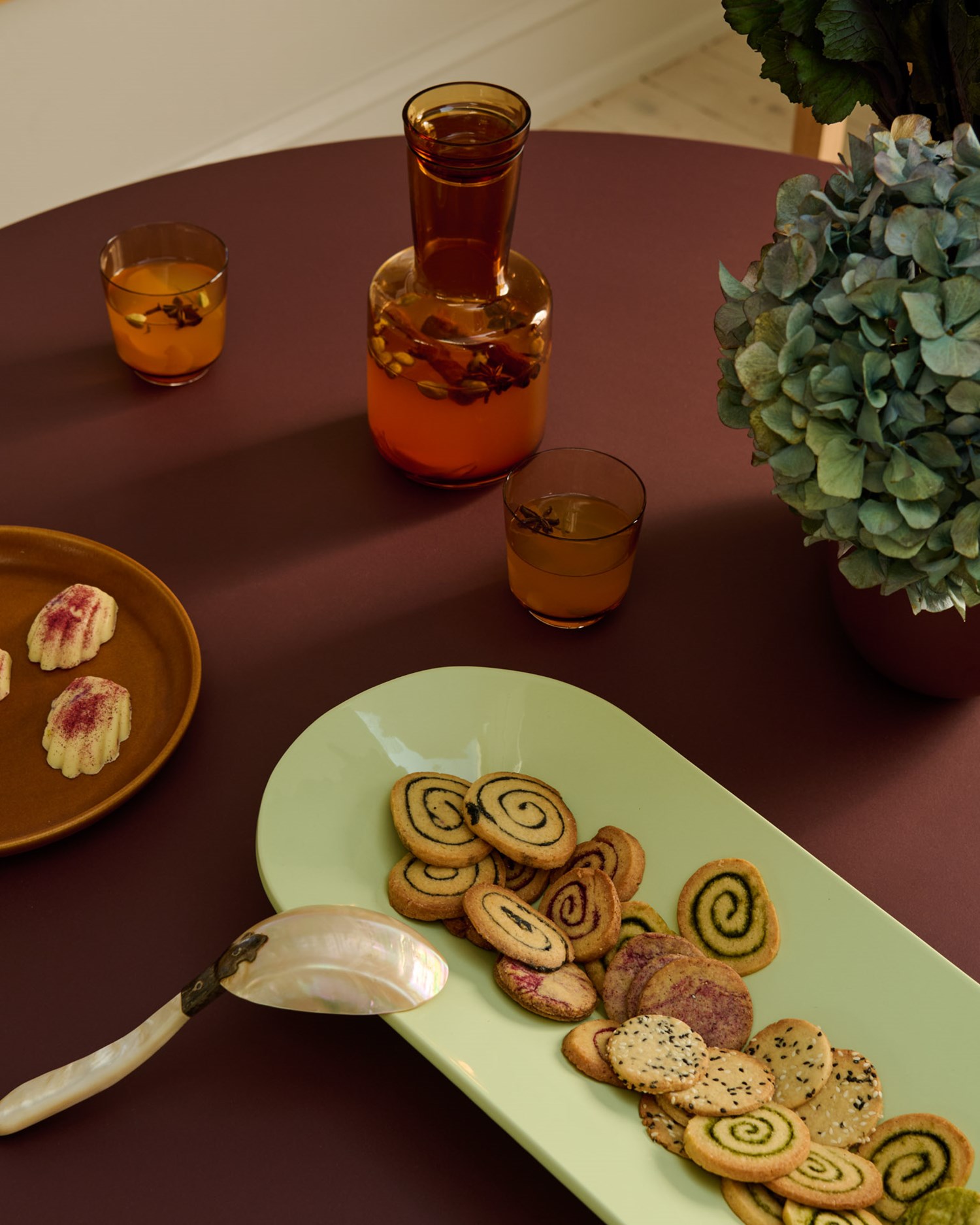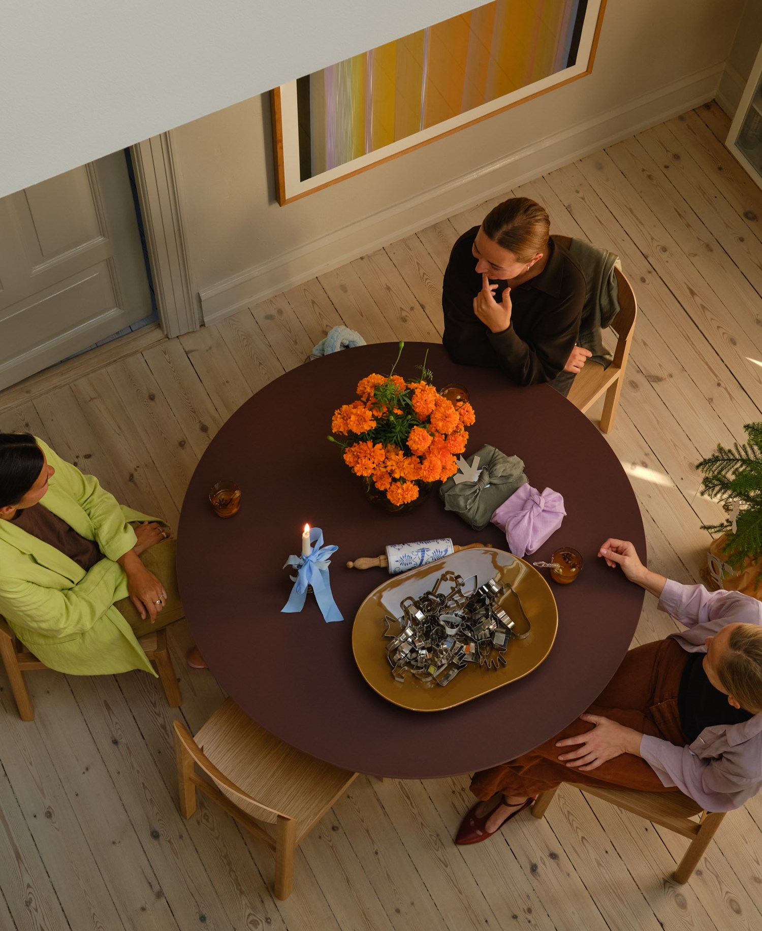 We light candles, bring out beautiful vases, and rediscover old holiday decorations. It’s all about bringing out the large serving dishes and textile napkins—setting things up thoughtfully, giving each item space and attention.