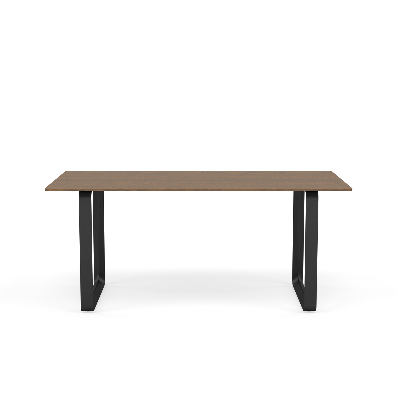 Tabletop in plywood with lacquered oak veneer surface, Black and Grey version in plywood with linoleum surface, White version in plywood with laminate surface (HPL). Solid Oak and Solid Smoked Oak tabletop in FSC™-certified (FSC-C028824) oak. Frame in powder-coated aluminum.