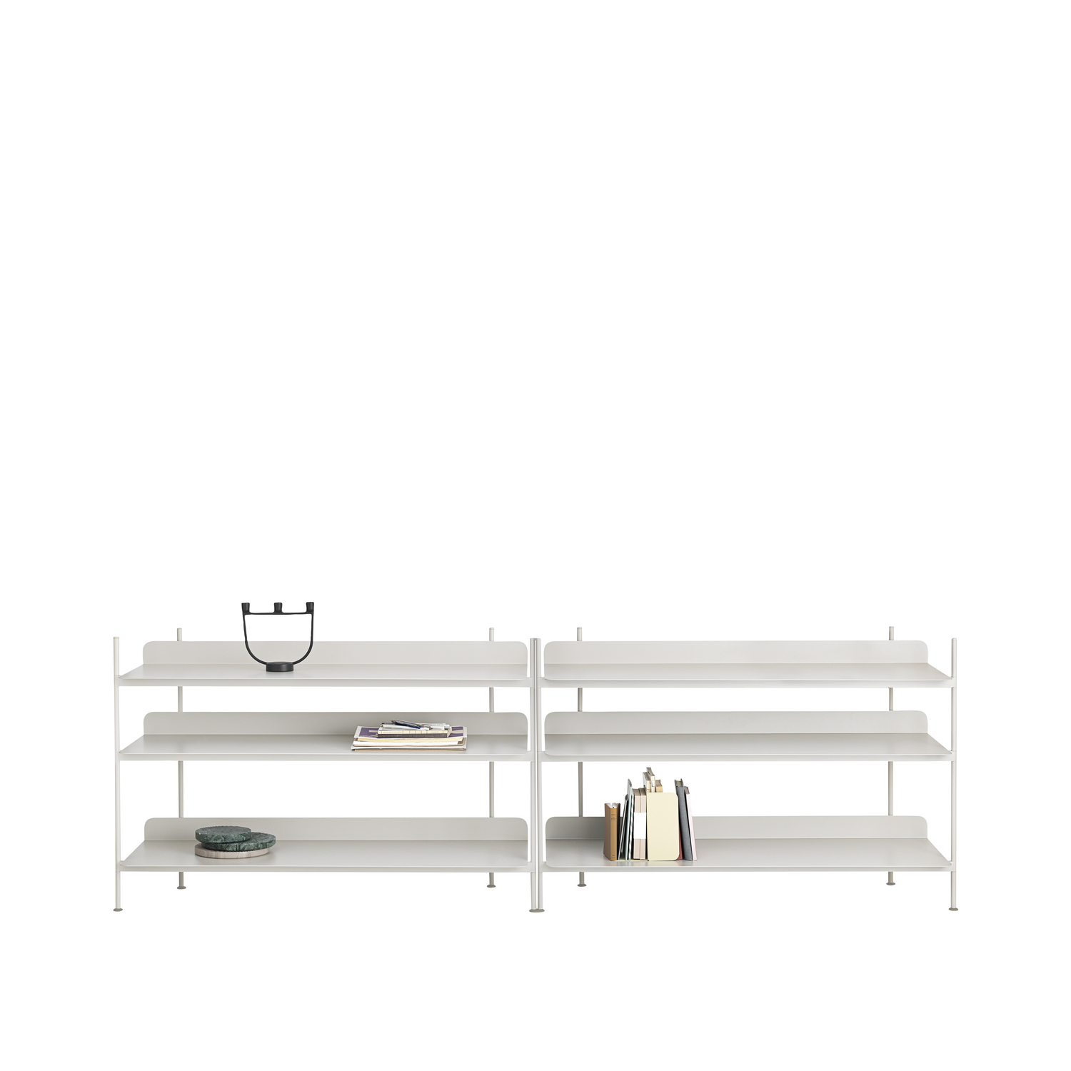 With its simple and refined expression, the Compile Shelving System features clean lines in a solid construction. The lower wall on the back of each shelf gives the Compile Shelving System an understated sense of detailing along with added functionality. Create your own personal Compile Shelving System from its simple components or choose one of the eight pre-arranged solutions.