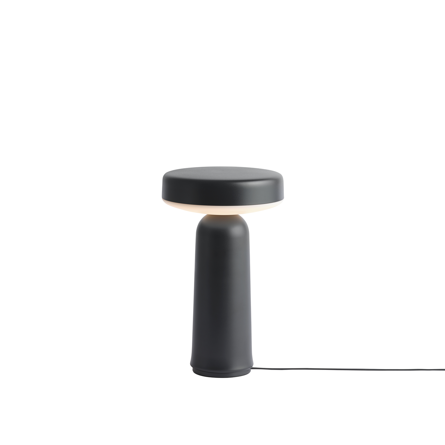 Battery-powered, dimmable and portable lamp with 8 hours of battery life on 100% intensity, 16 hours on 50% intensity and 29 hours on 25% intensity. Body and lampshade made in injection-molded ABS plastic, with an integrated LED light source. Diffuser in opal acrylic. Charging dock made in injection-molded ABS plastic with USB-C cable.
