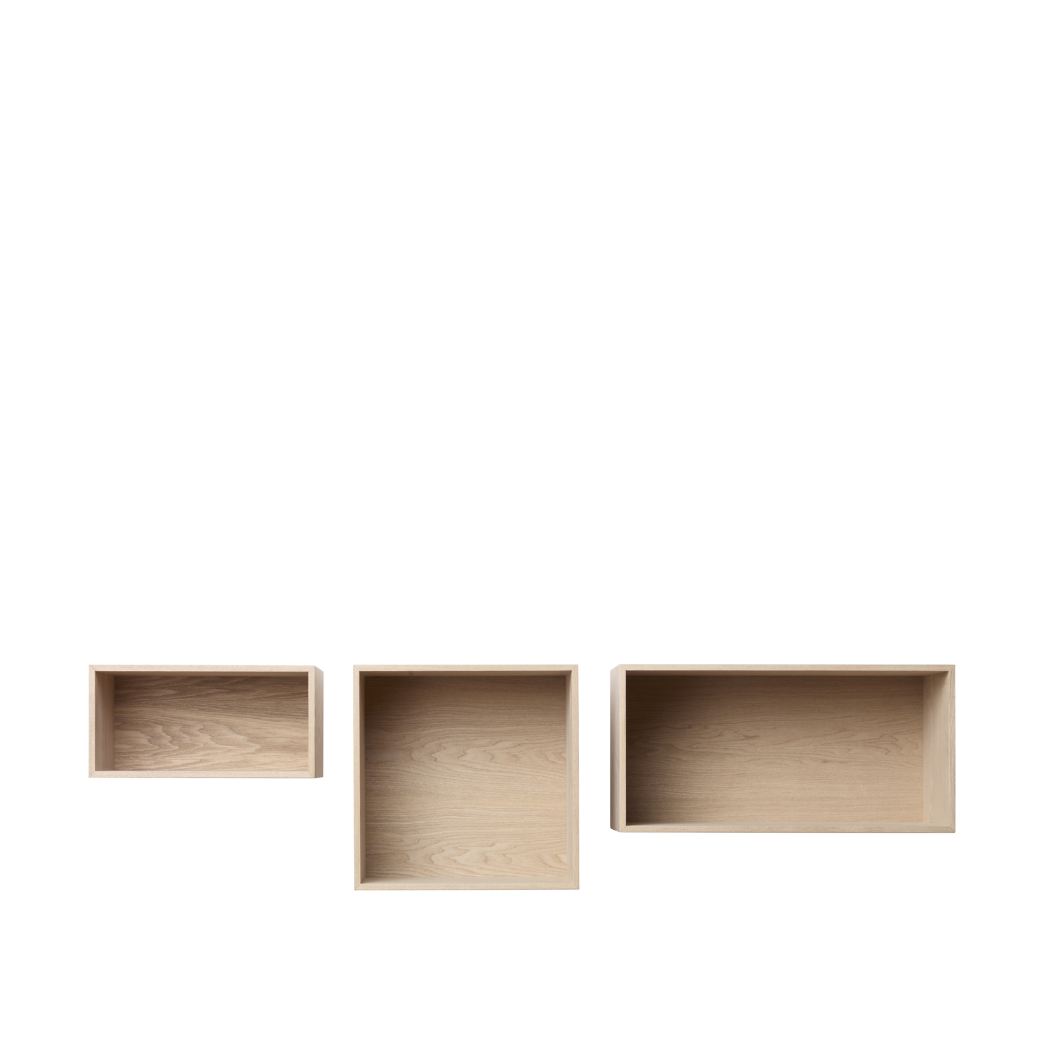 The Mini Stacked is a wall-hanging alternative to the Stacked Storage System with a lighter expression and smaller dimensions, available across various sizes and colors. The Mini Stacked Storage System is an elegantly functional match for smaller spaces such as kitchens, hallways, bedrooms, and workplace and hospitality settings.