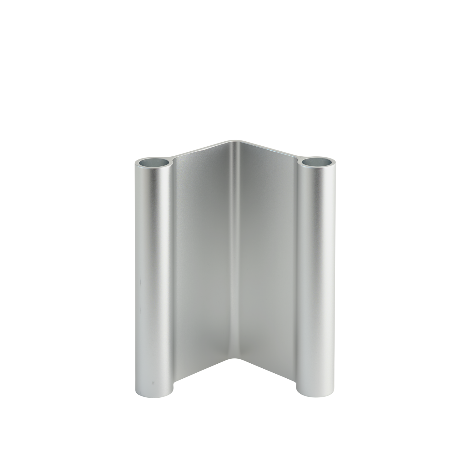 The candleholder is crafted from a single piece of extruded aluminum, shaped with precision. The candle holes and the edges are made and refined through CNC milling, and the surface is anodized for both durability and a sleek, matte finish.