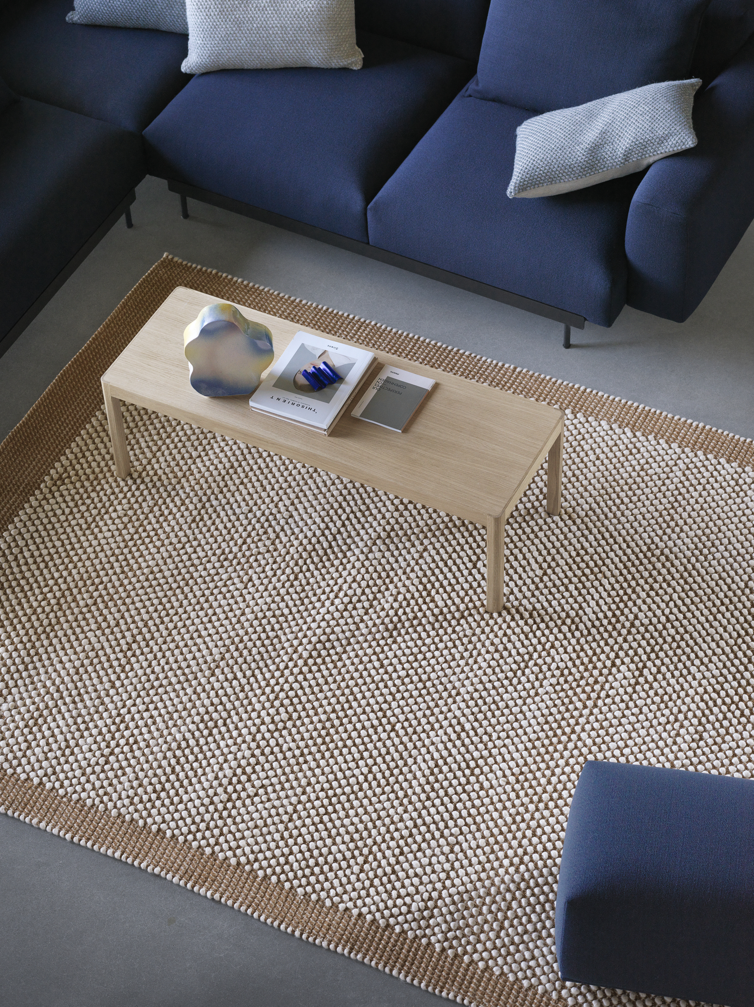Pebble Rug is made from wool. The color of wool may vary due to the wool’s natural base color. This means that the Pebble Rug can have slight color variations from one rug to the other as a result of the inherent characteristics of wool, enhancing the natural sentiment of the Pebble Rug.
