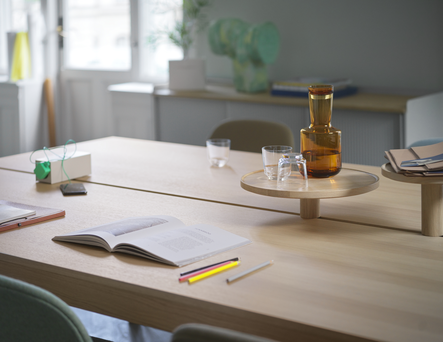 With its shapes inspired by modernist still life paintings yet interpreted in contemporary shapes and colors, the Raise Carafe has an inviting expression that encourages interaction when in use. Use the different colors together with the glasses for a unique and playful table setting.