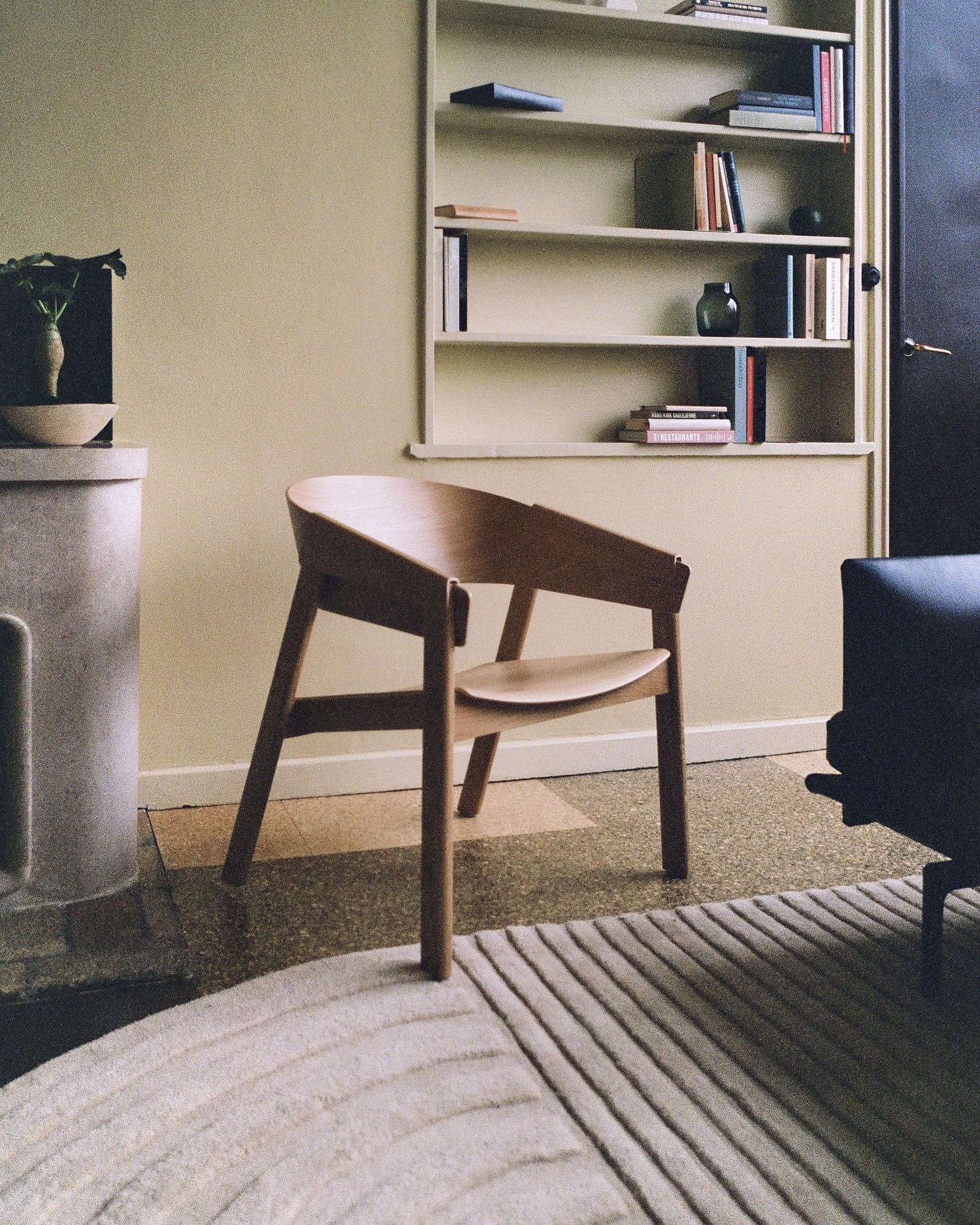 Relevo is a soft rug with a distinctly sculptural quality. Its striking graphic pattern is produced by trimming the tufted wool in different levels, thereby creating an eye-catching shadowplay that gives a sense of being two-tone rather than monochrome. The rug’s single rounded corner gives it a unique character, a dynamic expression in any setting.