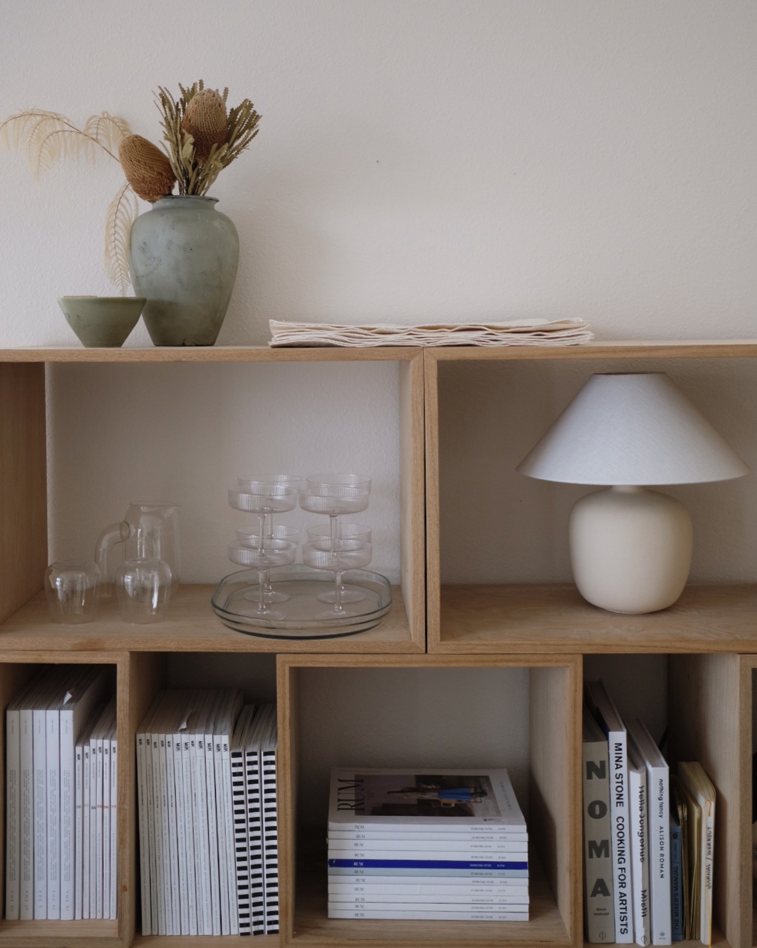 Being both versatile and functional, the Stacked Storage System can be arranged and rearranged for the exact aesthetic and functional needs of any space. Seen here is a predesigned Hallway Storage configuration that brings modern storage to any home, workplace or hospitality setting. All modules with backboard can be mounted directly onto the wall.